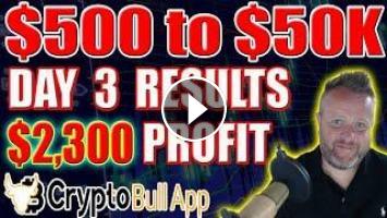 $500 to 50K starting from scratch day three $2,300 Profit trading with Crypto Bull App.