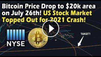 I believe by July 26th bitcoin will crash down to the low $20k area. I also believe the US stock market is topped out for a correction if not a major crash very soon in 2021. As the DXY / USD continues to push up bitcoin keep dropping. I expect when the Stock Market starts to dump this will cause bitcoin to crash twice as hard. If the stock market crashes you do not want to be in bitcoin! I give price targets showing what price bitcoin needs to get above before I get bullish and how low bitcoin can go. If the stock market only has a small correction it is possible btc price could pump and we could continue our bull run which would peak in Dec 2021. My chart technical analysis is base on using trendlines and Fibonacci circles.