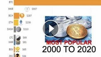 Timeline history of the most popular crypto currencies on the market from 2000 to 2020. reported statistics.